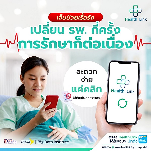Health Link เป็นระบบเชื่อมโยงข้อมูลสุขภาพ ภายใต้ความร่วมมือระหว่างกระทรวงดิจิทัลเพื่อเศรษฐกิจและสังคม (ดศ.) และ กระทรวงสาธารณสุข (สธ.) ให้แพทย์เข้าถึงข้อมูลประวัติการรักษาจากสถานพยาบาลอื่นได้อย่างสะดวกและปลอดภัย ประหยัดเวลาและค่าใช้จ่ายของผู้ป่วยเมื่อย้ายสถานพยาบาล Health Link มีเป้าหมายที่จะเป็นแพลตฟอร์มกลางของประเทศไทย ที่รองรับการแลกเปลี่ยนเชื่อมโยงข้อมูลประวัติการรักษาพยาบาล โดยใช้มาตรฐานข้อมูลกลางและมีความปลอดภัยในระดับมาตรฐานสากล สามารถรองรับปริมาณของข้อมูลจำนวนมากที่คาดว่าจะเติบโตอย่างก้าวกระโดดได้อย่างมีประสิทธิภาพ โปร่งใสและมีธรรมาภิบาล เพื่อสร้างกระบวนการในการบริหารจัดการของการเชื่อมโยงแลกเปลี่ยนข้อมูลอย่างเป็นรูปธรรม (ดูข้อมูลโครงการ และรายชื่อสถานพยาบาลในเครือข่ายทั้งหมดได้ที่ www.healthlink.go.th/ )
